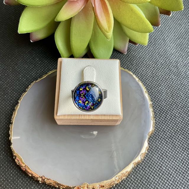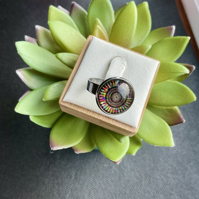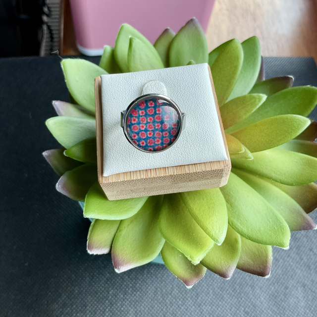 Elevate your style with our handmade ring featuring a vibrant 14mm glass cabochon in a variety of colours. Made with high-quality stainless steel, this adjustable ring offers durability and a comfortable fit. Whether you're looking for a pop of colour or a unique accessory, this versatile ring is perfect for any occasion. Great for everyday wear or as a thoughtful gift for a loved one.
