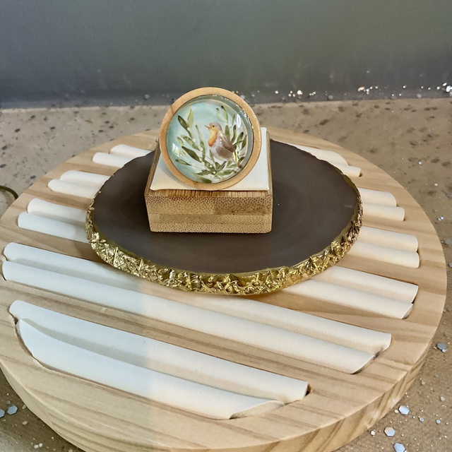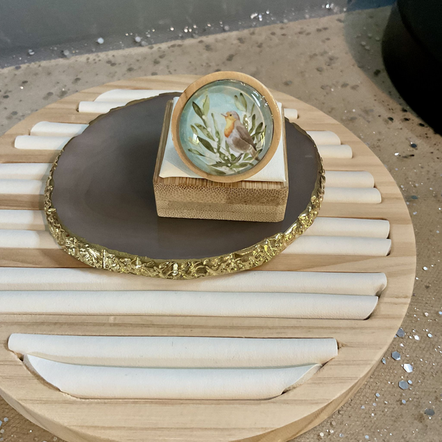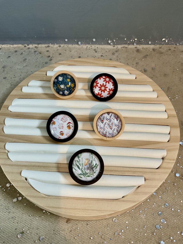 This handmade brooch features a charming robin design printed on glossy photo paper and encased in resin with a glass dome on top. The brooch measures either 25 or 20 mm, making it the perfect accessory for adding a touch of festive cheer to any outfit. This unique piece makes a thoughtful Christmas gift for bird lovers or anyone who appreciates handmade craftsmanship. Add a touch of nature-inspired style to your holiday wardrobe with this eye-catching brooch.