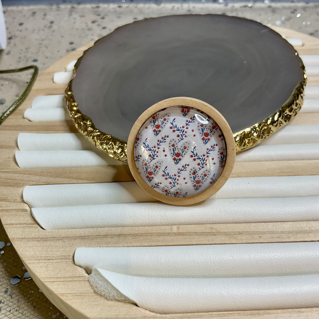 This handmade brooch features a beautiful colourful design printed on glossy photo paper and encased in resin with a glass dome on top. The brooch measures 25 mm, making it the perfect accessory for adding a touch of festive cheer to any outfit. This unique piece makes a thoughtful gift for anyone who appreciates handmade craftsmanship. Add a touch of nature-inspired style to your holiday wardrobe with this eye-catching brooch.
