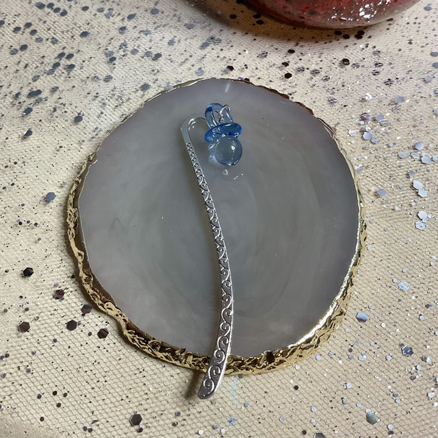 Celebrate special milestones with our 83mm metal bookmark featuring a charming blue or pink soother pendant, perfect for christenings and baby showers. This adorable accessory adds a sweet and sentimental touch to any gift for parents or little ones. Whether for a new parent or a beloved baby, this bookmark is a thoughtful and practical keepsake to commemorate the joyous occasion. Make memories last with this beautiful and functional keepsake.