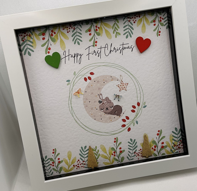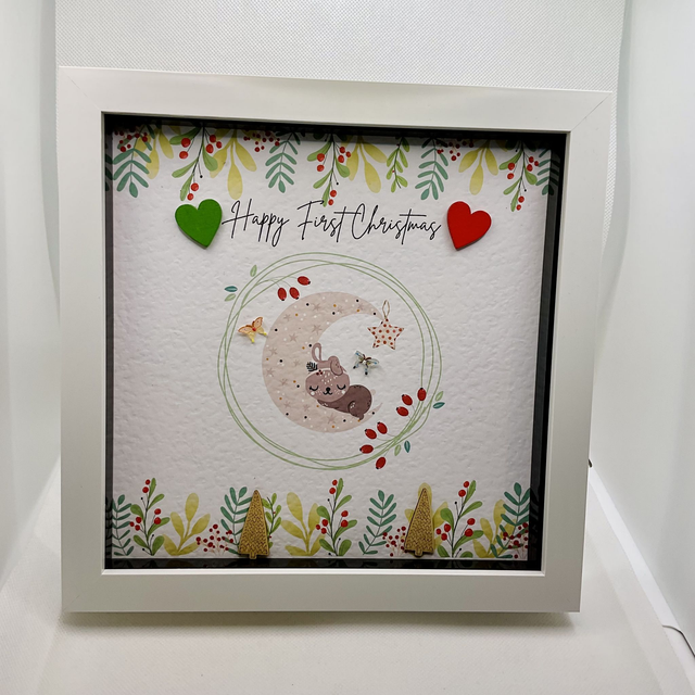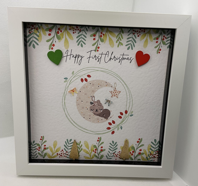 Celebrate baby's first Christmas with our personalised 9 inch grain effect white frame. Add a personal touch with a custom message or name. Matching album and card available to complete the set. Crafted with high-quality materials, this frame is a timeless keepsake that will be cherished for years to come. Perfect for gifting to new parents or for displaying in your own home. Make this Christmas unforgettable with our personalised first Christmas frame.