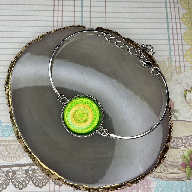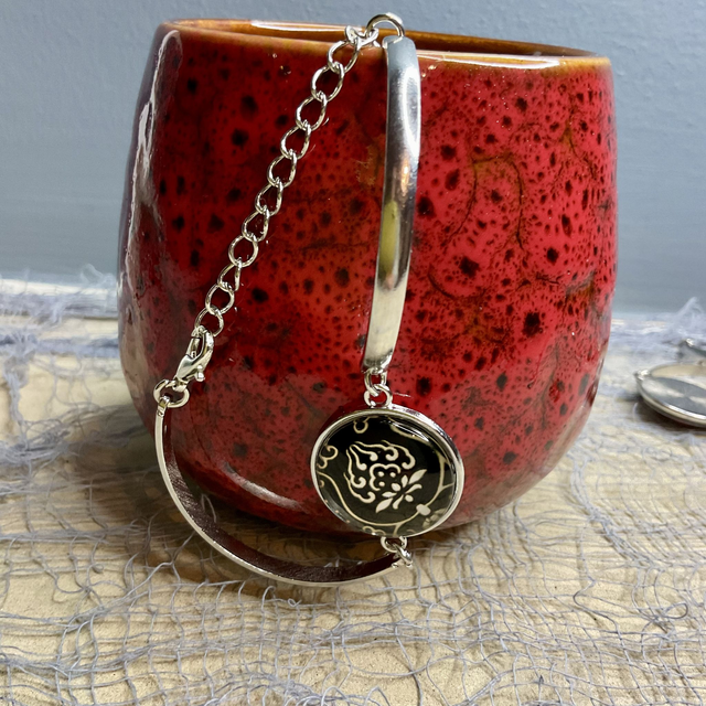 This handmade cabochon bracelet is a unique and stylish accessory that will add a touch of elegance to any outfit. This bracelet is perfect for all occasions, whether dressing up for a special event or adding a touch of sophistication to your everyday look. It also makes a great gift for someone special who appreciates handmade jewellery.